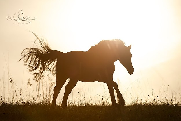 Dieses Foto ist nicht zum Nachmachen. Denn das direkte fotografieren in die Sonne sollte man weder seinem Auge noch dem Kamera-Sensor zumuten. Das war auch nicht geplant. Aber ich wußte, dass Pferde Steigungen gerne im Galopp nehmen. Und so plazierte ich mich am Abhang und verfolgte dieses Deutsche Reitpony mit der Kamera bis ich plötzlich geblendet wurde. Weil ich dennoch auf den Auslöser drückte gibt es dieses Bild, das sehr viele Menschen - auch Nicht-Pferdemenschen - anspricht.