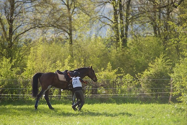 Zum einen hat sie das Pferd nicht durchpariert. Im schnellen Galopp ist sie über die Ziellinie geritten, hat das Pferd auslaufen lassen und ist im Schritt abgesprungen. Die Pferde sind bei der Geländeprüfung sehr schnell unterwegs, der Puls ist sehr hoch und sollte behutsam wieder auf Normallevel gebracht werden. Wer Marathon läuft weiß selbst, dass es für's Herz besser und angenehmer ist, wenn man noch ruhig weitergeht, statt stehenbleibt.