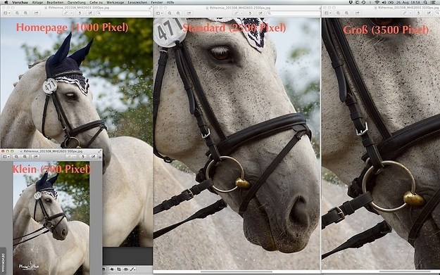 • Standard (2500 Pixel): bildschirmfüllend. Für Fotoalben, Diashows, Abzüge selbst erstellen bis DINA4. Die Dateigröße ist 1 bis 2 MB.